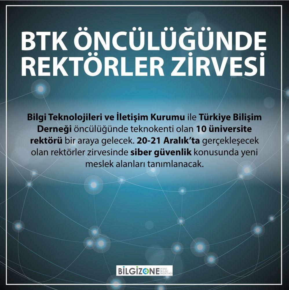 Artan siber saldırılara karşı önlem almak isteyen Bilgi Teknolojileri ve İletişim Kurumu (BTK) ile Türkiye Bilişim Derneği (TBD) çalışmalara başladı. BTK ile TBD öncülüğünde teknokenti olan 10 üniversite ile rektörler zirvesi yapılacak.