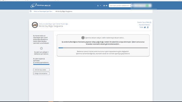 Uygulamaya yeni eklenen hizmet e-devlet sayfasını kilitledi. Alt-üst soy bilgisi sorgulama sistemine girenler “Şu anda kullandığınız hizmette yaşanan talep yoğunluğu nedeni ile işleminiz sıraya alınmıştır. İşlem sonucunuz birazdan otomatik olarak görüntülenecektir” uyarısıyla karşılaşıyor.