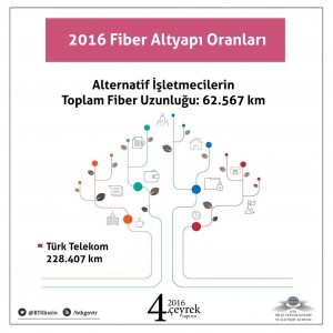 Raporda verilen rakamlara göre 2016 yılının son üç ayında fiber altyapı oranları, alternatif işletmecilerin toplam fiber uzunluğu: 62.567 km olduğu belirlendi. Türk telekom operatörüne bakıldığında ise 228, 407 km olarak görüldü.