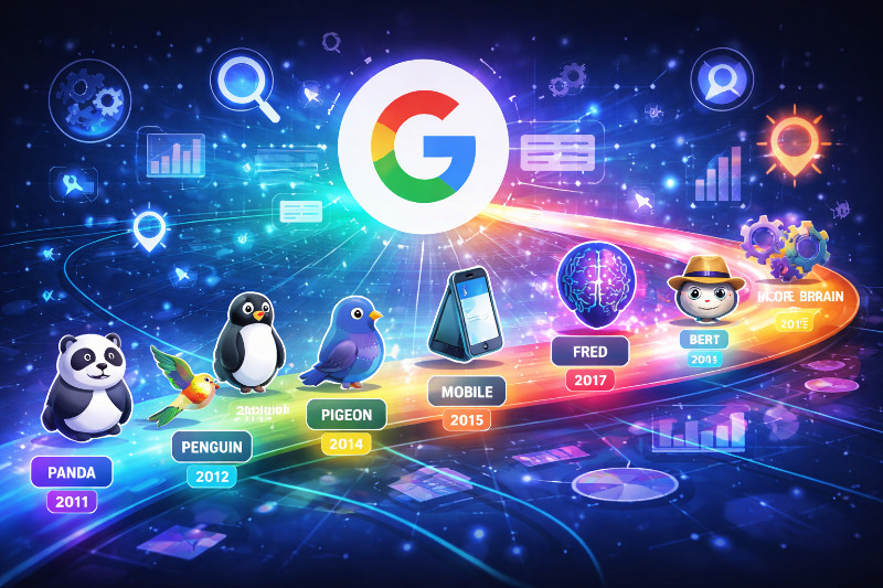 Google, kuruluşundan bu yana arama sonuçlarının kalitesini artırmak için yüzlerce algoritma güncellemesi yayınlamıştır. Bu güncellemeler, web sitelerinin sıralamasını doğrudan etkileyerek SEO dünyasının sürekli değişmesine neden olmuştur.
