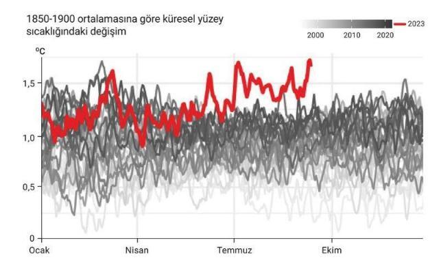 Haziran 2023-Ağustos 2023 dönemi kayda geçen en sıcak dönem oldu.