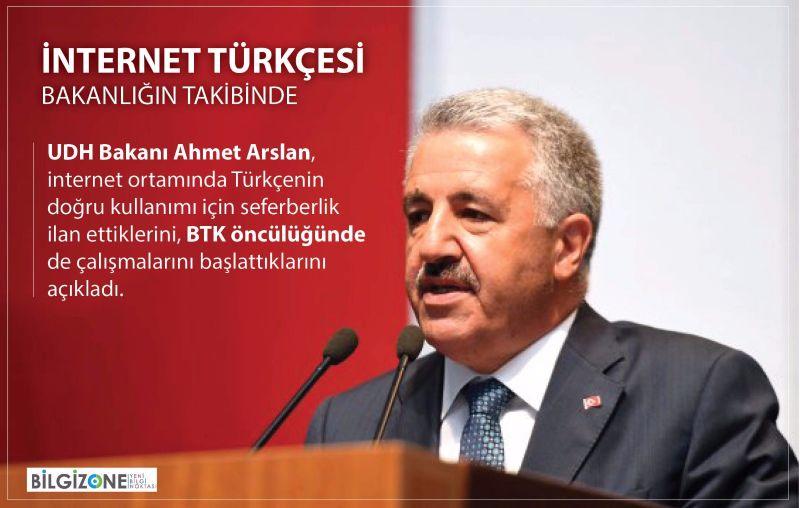 Cumhurbaşkanı Recep Tayyip Erdoğan ve Başbakan Binali Yıldırım’ın gündeme getirdiği sosyal medyada ve internette Türkçenin doğru kullanımı ile ilgili olarak Ulaştırma, Denizcilik ve Haberleşme Bakanı Ahmet Arslan’dan açıklama geldi.