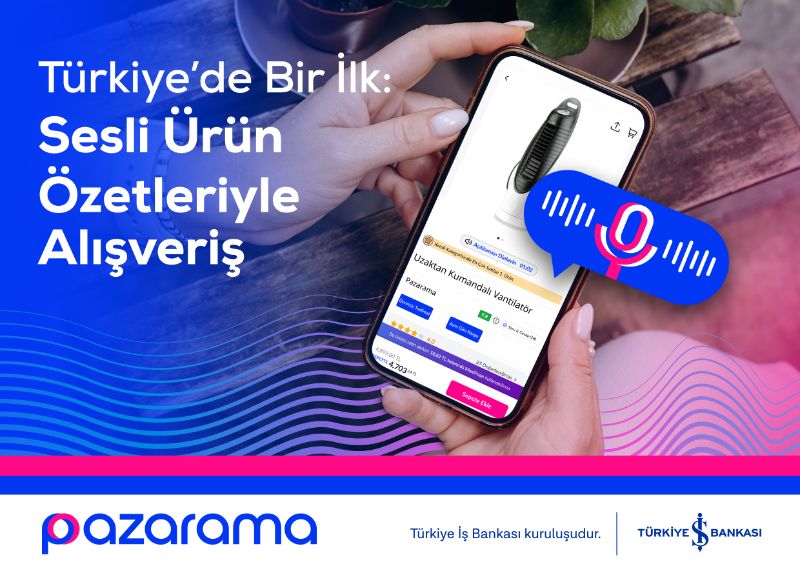 Türkiye İş Bankası’nın yerli e-ticaret platformu Pazarama, kullanıcı deneyimini ileri teknolojiyle buluşturan yeni bir özelliği hayata geçirdi. Türkiye’de bir ilk olan Yapay Zekâ Destekli Sesli Ürün Özetleri sayesinde kullanıcılar, ürün açıklamalarını okumak yerine dinleyerek alışveriş yapabilecek.