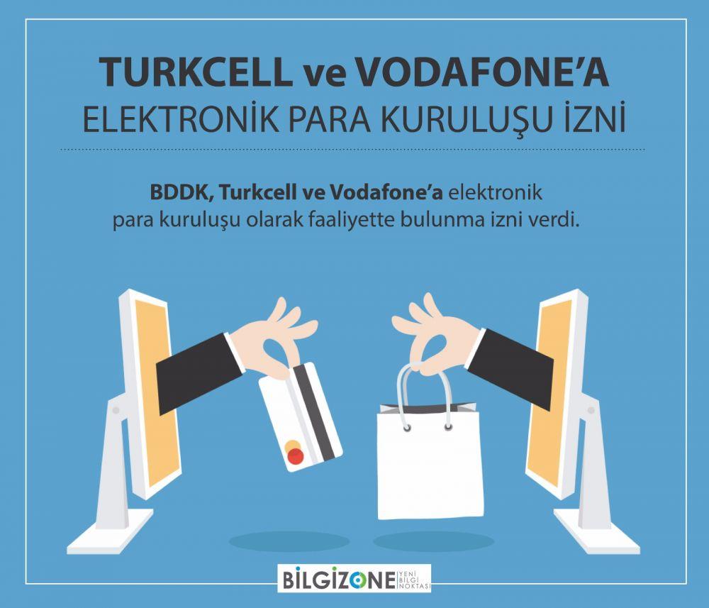 Bankacılık Düzenleme ve Denetleme Kurumu (BDDK), Turkcell Ödeme ve Elektronik Para Hizmetleri AŞ’ye ve Vodafone Elektronik Para ve Ödeme Hizmetleri AŞ‘ye elektronik para kuruluşu olarak faaliyette bulunma izni verdi.