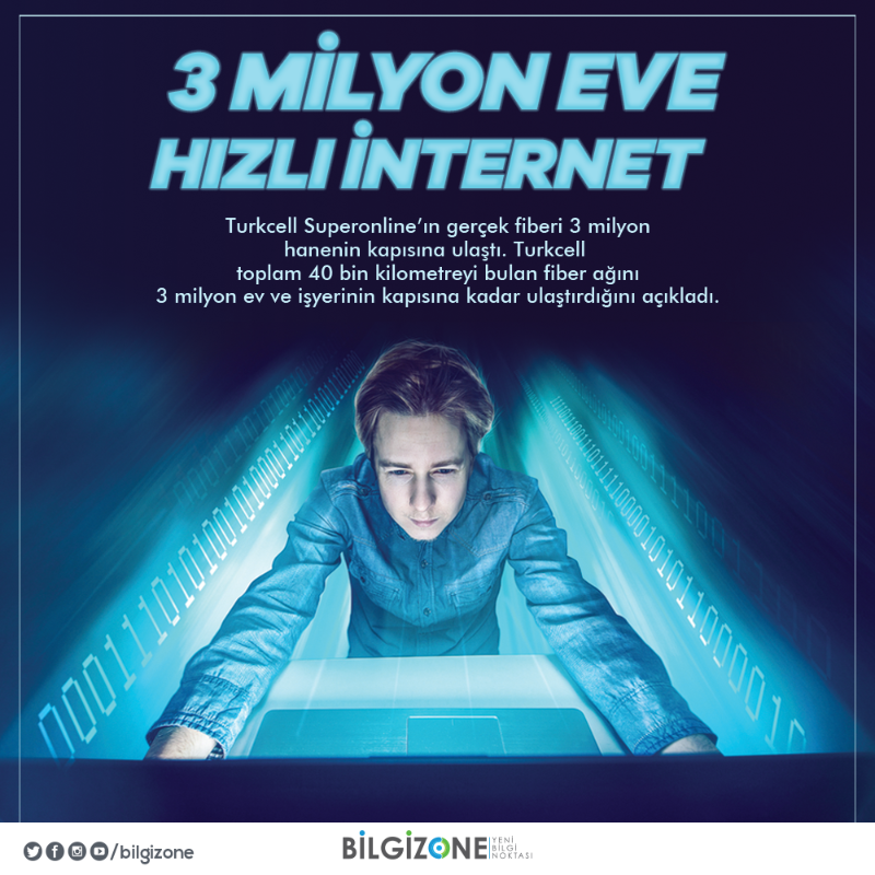 Turkcell 5.2 milyar TL’lik yatırımla 40 bin kilometrelik fiber ağ oluşturdu. Hızlı internet 3 milyon haneye ulaştırıldı.