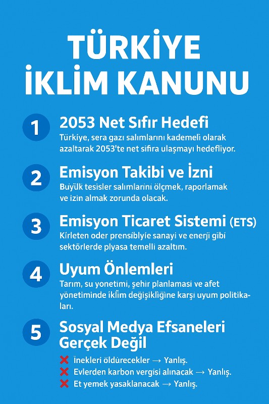 Özetle, bu tür paylaşımlar, kanunun bilimsel ve yasal çerçevesini çarpıtıyor. Türkiye İklim Kanunu, günlük yaşamı kısıtlamaktan çok, sera gazı emisyonlarını azaltarak sürdürülebilir bir ekonomi ve toplum inşa etmeyi amaçlıyor.